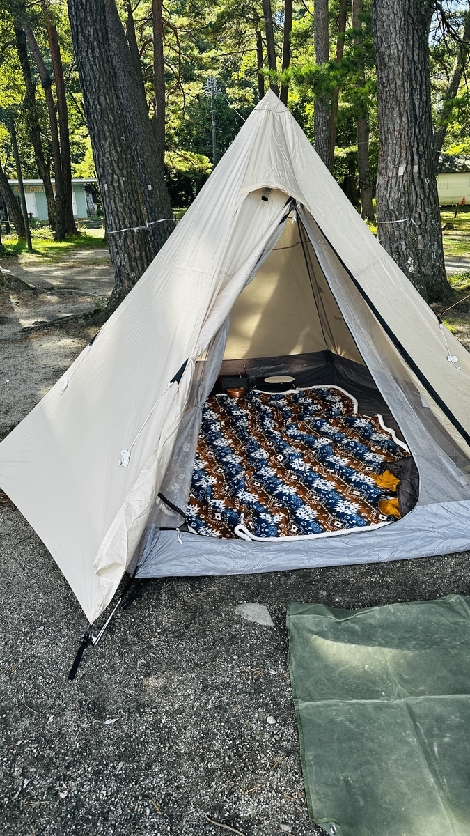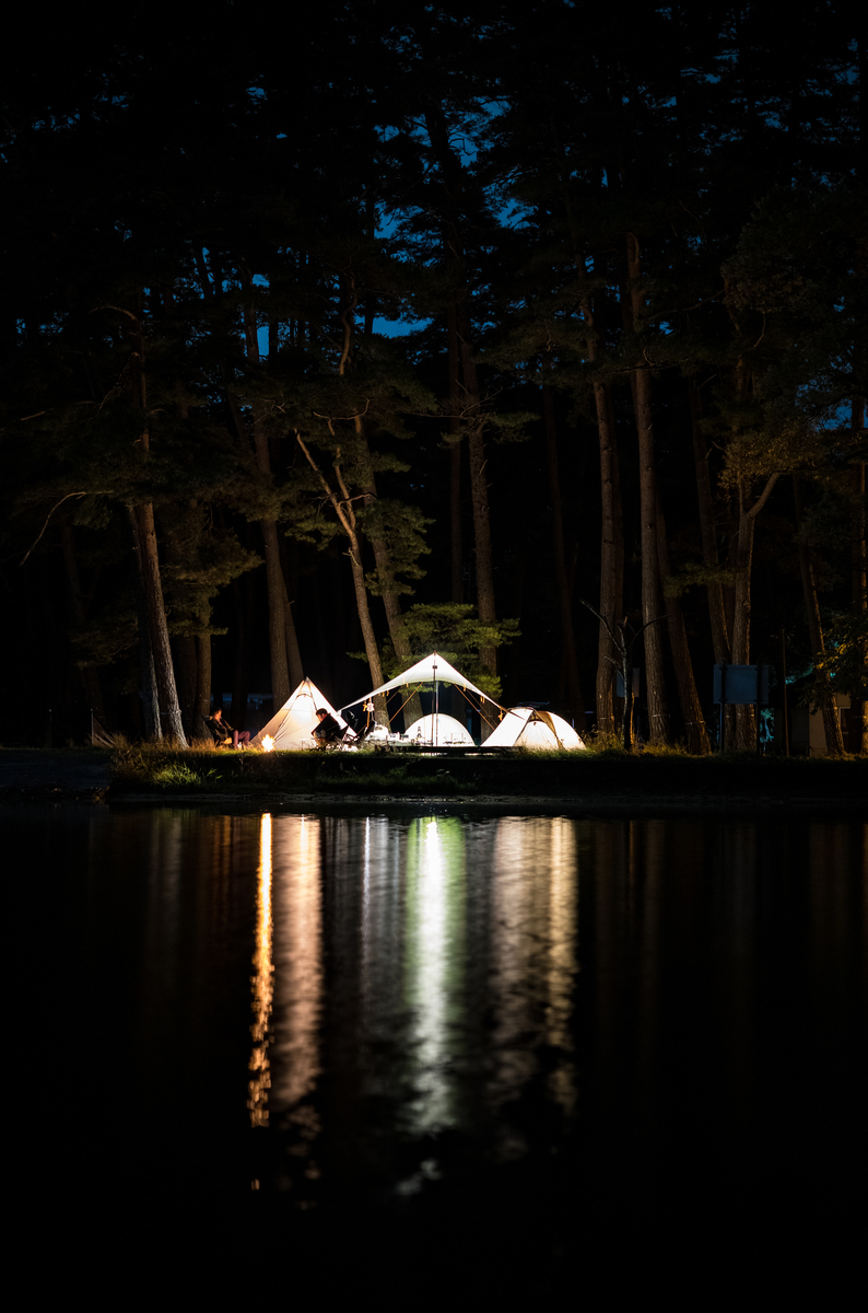 釣り終わってキャンプ場ついたら、設営して。