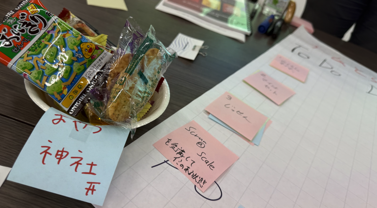 付箋に書いたフィーチャーだったりエピックをあーだこーだしながらタスクまで分解していって、概算見積もり方法とかとか学びます。